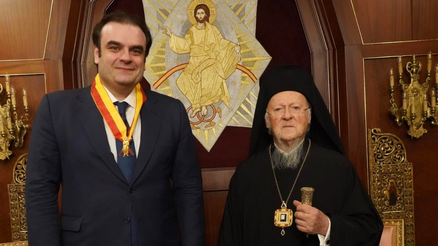 Ο Πατριάρχης Βαρθολομαίος απένειμε τον Σταυρό του Αγίου Ανδρέου στον Κυριάκο Πιερρακάκη, που μετέβη στην Κωνσταντινούπολη μαζί με τον Γ.Γ. Θρησκευμάτων Γιώργο Καλαντζή.