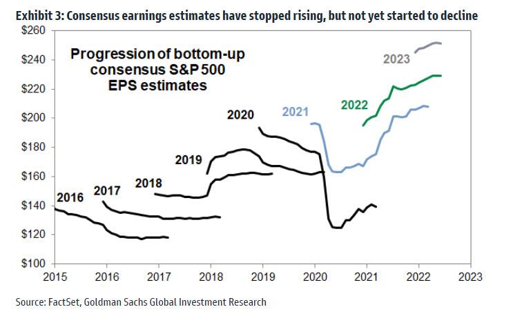 Κατά την Goldman Sachs «Εάν το μοντέλο μας αποδειχθεί σωστό, μπορεί να δούμε μεγάλες μειώσεις και επί τα χείρω αναθεωρήσεις στα κέρδη των εταιριών στο μέλλον.