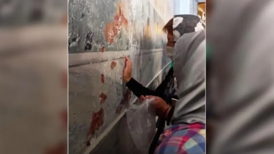 Χρήστης ανάρτησε φωτογραφίες δύο γυναικών που «παίρνουν κομμάτια από τον τοίχο του κτιρίου και τα τοποθετούν σε σακούλες», επισημαίνοντας ότι «κάποια εποχή δεν μπορούσε κανείς να βγάλει φωτογραφία με φλας, επειδή θα προκαλούνταν ζημιά στους τοίχους».