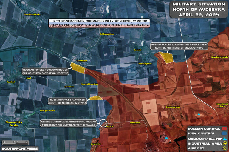 Βόρεια της πόλης, ο ρωσικός στρατός εισέβαλλε στο χωριό Ocheretino και έχει ήδη πάρει τον έλεγχο σχεδόν του μισού οικισμού.