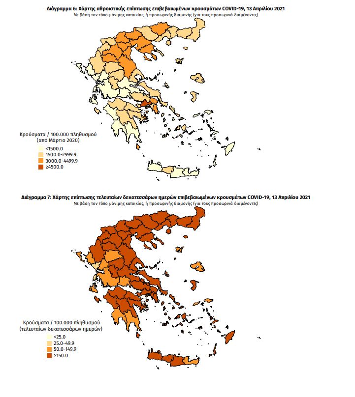 Τα νέα 13/4 εργαστηριακά επιβεβαιωμένα κρούσματα της νόσου που καταγράφηκαν τις τελευταίες 24 ώρες είναι 4.033, εκ των οποίων 15 εντοπίστηκαν κατόπιν ελέγχων στις πύλες εισόδου της χώρας.