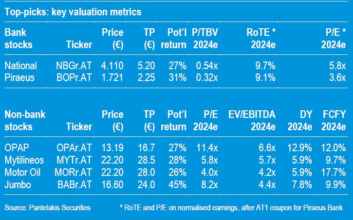 Στα top picks του είναι οι Εθνική, Πειραιώς, ΟΠΑΠ, Μυτιληναίος, Motor Oil και Jumbo.