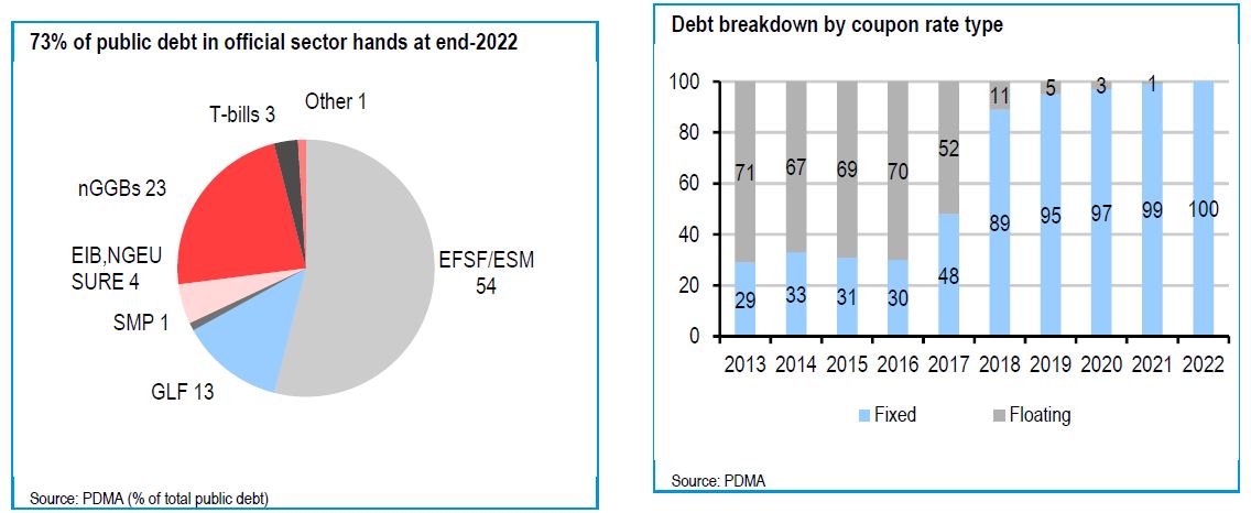 Το δημόσιο χρέος παραμένει πολύ πιο βιώσιμο από ό,τι φαίνεται, λόγω των χαμηλών (<2%) μέσων επιτοκίων, του 100% σταθερού κουπονιού, της εξαιρετικά μακράς (20ετή) διάρκειας και του μεγάλου αποθέματος ρευστότητας, που εξαλείφει τους κινδύνους αναχρηματοδότησης.