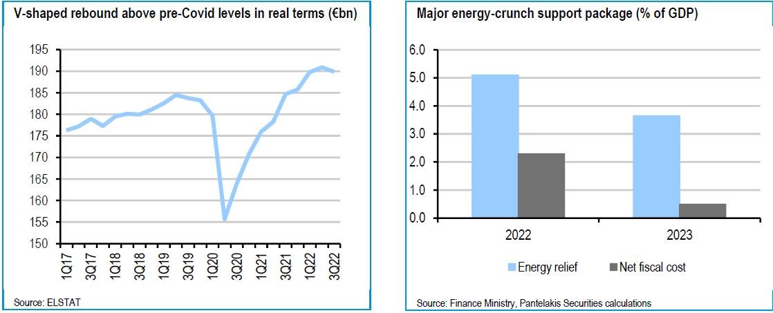 Πρώτον, η τοπική οικονομία έχει ήδη ανακάμψει πολύ πάνω από την προ - Covid περιόδου (διόλου ευκαταφρόνητο κατόρθωμα για τα δεδομένα της ΕΕ), έχοντας ξεπεράσει καλά την ενεργειακή κρίση (χάρη στα καλά σχεδιασμένα μέτρα δημοσιονομικής ελάφρυνσης) και με αιχμή του δόρατος την ανάκαμψη σε σχήμα V στον τουρισμό και τις ροές άμεσων ξένων επενδύσεων που σημείωσαν ρεκόρ.