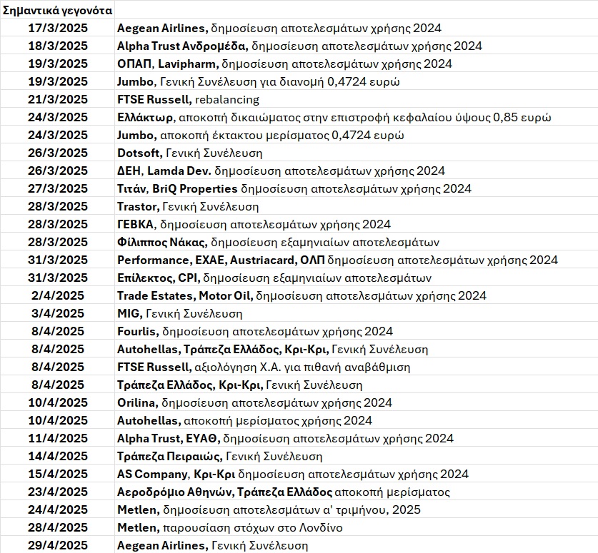 Τα αναγραφόμενα στη στήλη είναι για την ενημέρωση των αναγνωστών και δεν πρέπει να θεωρηθούν ως πρόταση για αγορά ή πώληση μετοχών. Οι πληροφορίες συλλέγονται από αξιόπιστες πηγές αλλά δεν υπάρχει εξασφάλιση ότι είναι πλήρεις ή ακριβείς.