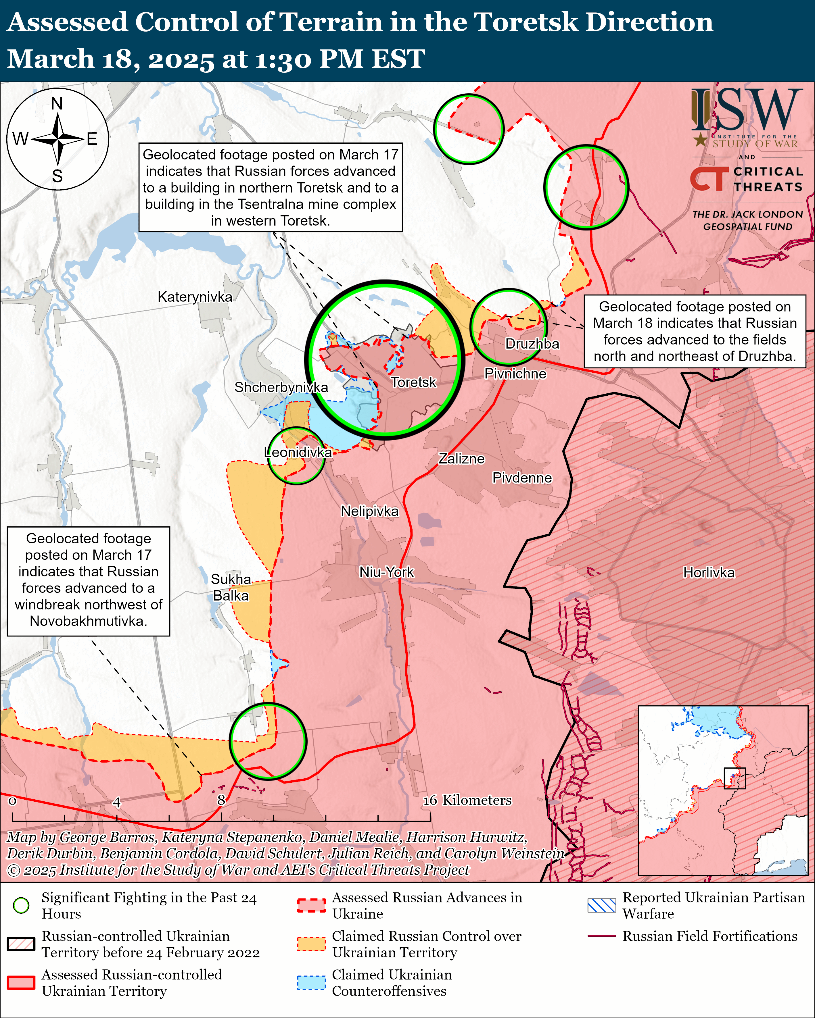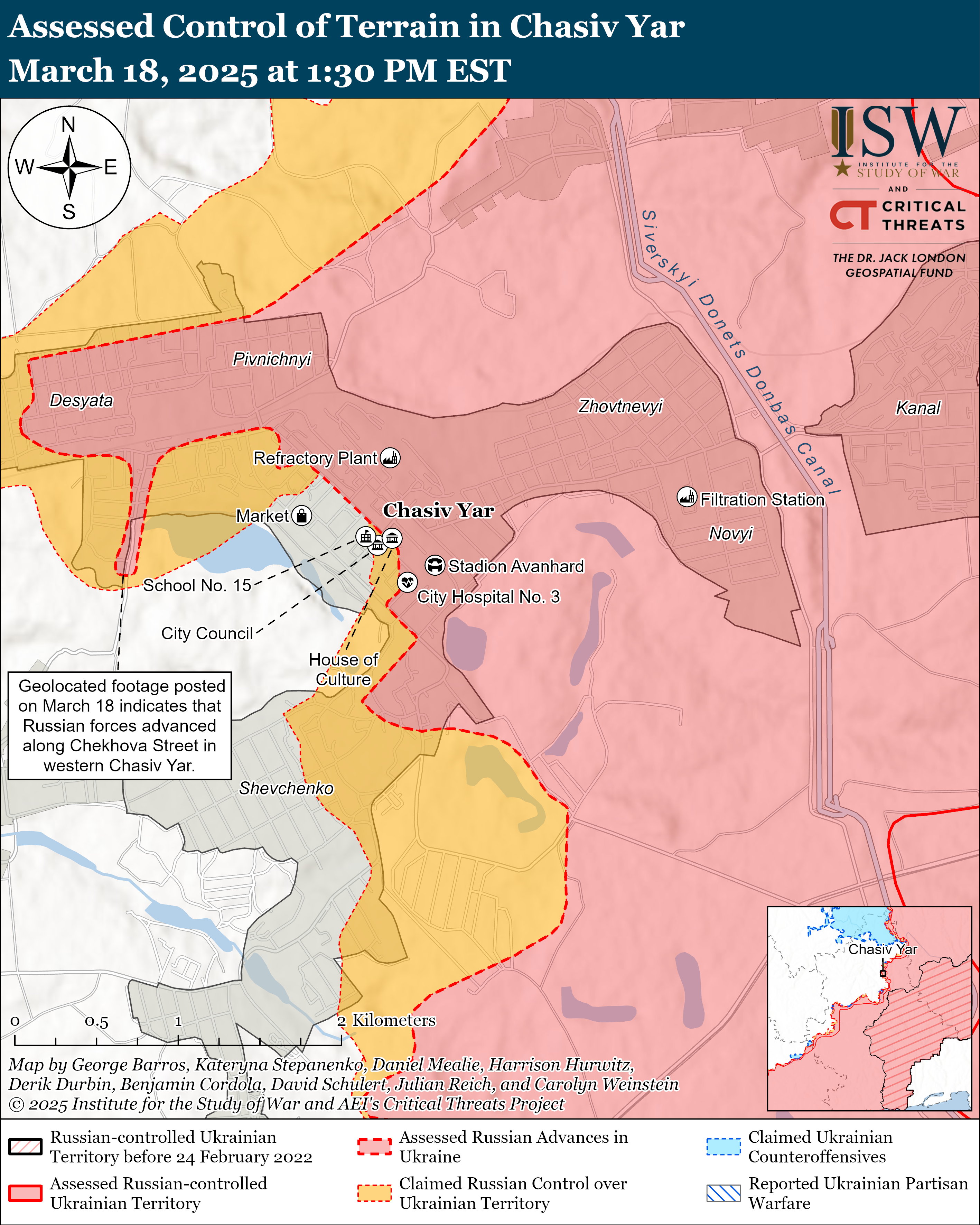Γεωγραφικά πλάνα που δημοσιεύθηκαν στις 17 Μαρτίου υποδεικνύουν ότι οι ρωσικές δυνάμεις προχώρησαν πρόσφατα στο δυτικό Chasiv Yar