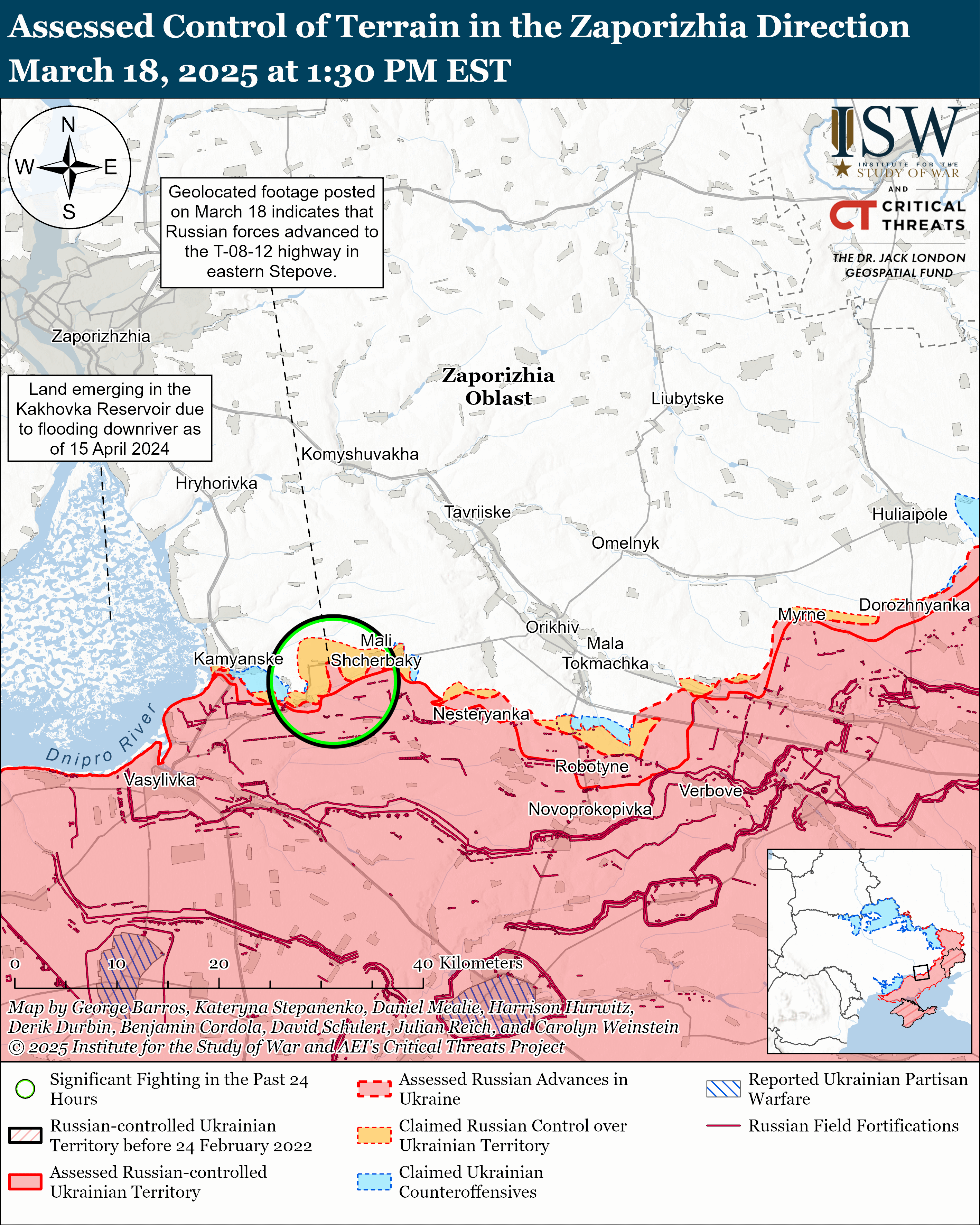 Οι ρωσικές δυνάμεις έχουν επιχειρήσει μόνο περιστασιακές τοπικές επιθετικές επιχειρήσεις δυτικά του Orikhiv από την ουκρανική αντεπίθεση το καλοκαίρι του 2023.