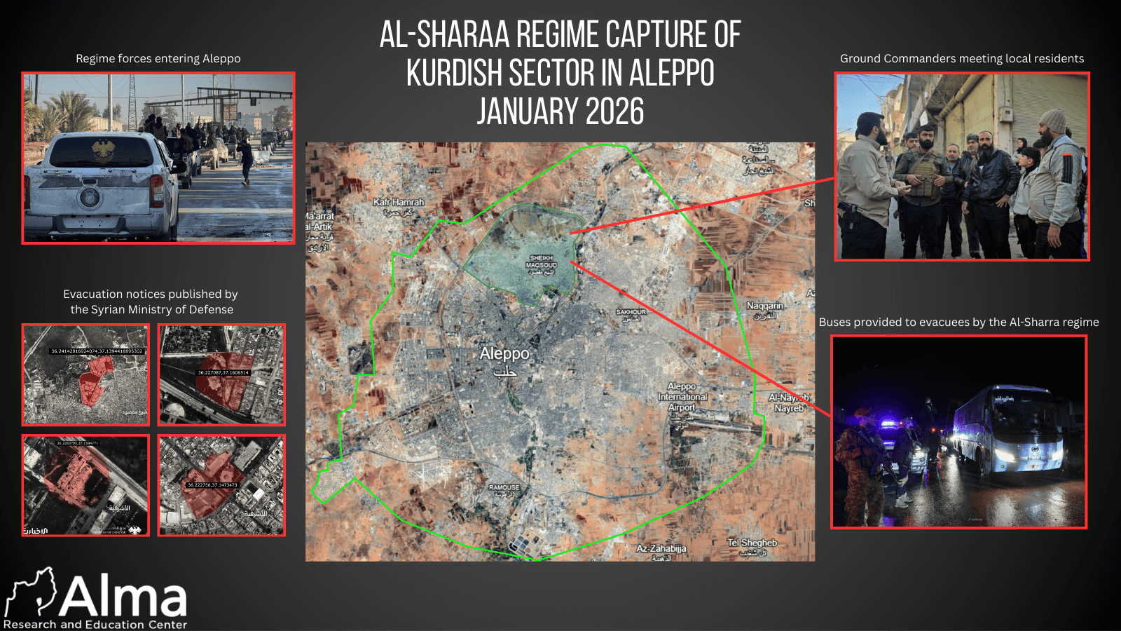 Με βάση τις παραβιάσεις αυτές, εκτιμάται ότι η πλειονότητα των Κούρδων που εγκατέλειψαν τις συνοικίες Sheikh Maqsoud και Ashrafieh —περισσότεροι από 150.000 άνθρωποι εκτοπίστηκαν κατά τη διάρκεια της μάχης— δεν πρόκειται να επιστρέψουν σύντομα.