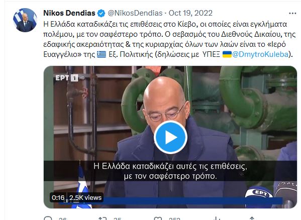 Ακολουθούν οι αναρτήσεις του κ. Δένδια του περασμένου Οκτωβρίου: