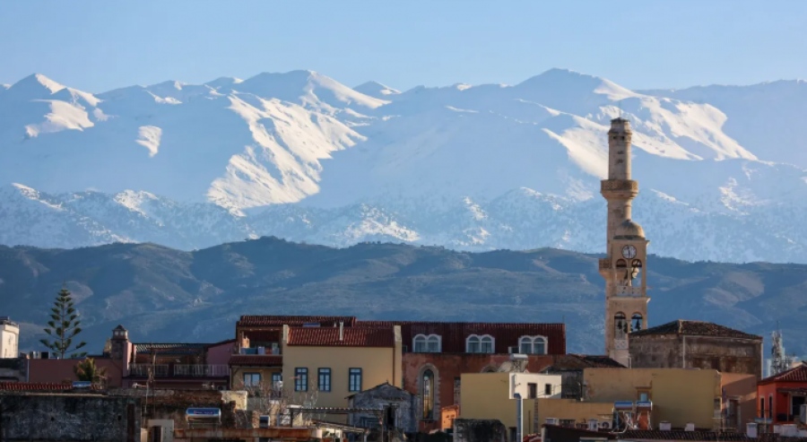 Οι περιοχές πάνω από τα 1.000 μέτρα στα Λευκά Όρη είναι καλυμμένες με χιόνι, με τη θερμοκρασία να βρίσκεται υπό το μηδέν.