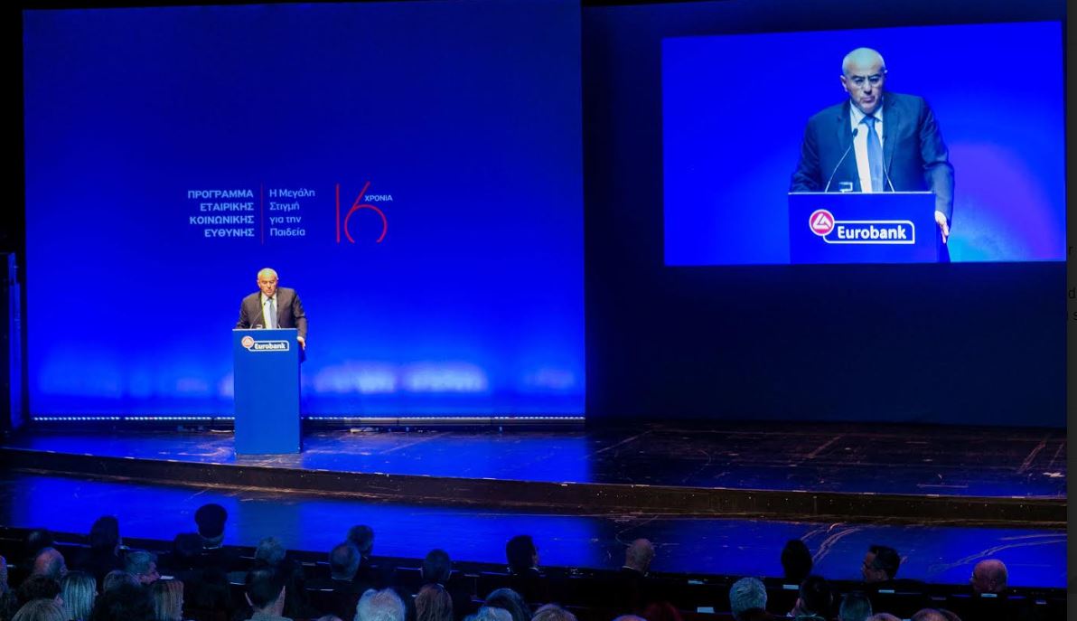 Τους 327 αριστούχους αποφοίτους από τα Λύκεια των Νομών Αττικής, Εύβοιας, Βοιωτίας και Φωκίδας βράβευσε η Eurobank σε ειδική εκδήλωση στην Αθήνα, στο πλαίσιο του Προγράμματος «Η Μεγάλη Στιγμή για την Παιδεία» που αποτελεί το μακροβιότερο Πρόγραμμα Εταιρικής Κοινωνικής Ευθύνης του ομίλου Eurobank, με 16 συνεχή χρόνια λειτουργίας και προσφοράς.